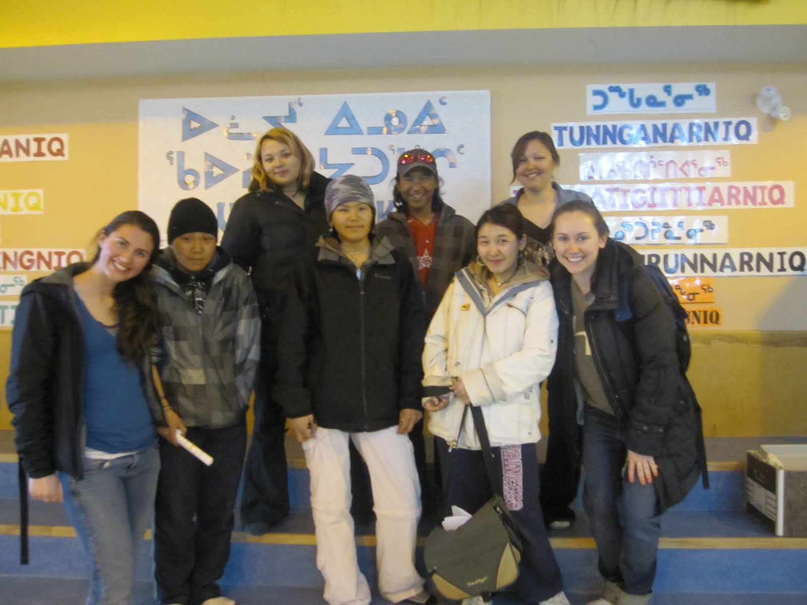 We taught leadership and communication to the Grade 7, 8, and 9s, playing loads of games and jeopardy! Monday we did a question and answer class on Sexual Health and wrapped up our CTS course, we will miss those guys! Tuesday was Grade 6 graduations, which coincided with Emma’s convocation! It was a really nice ceremony, a couple kids we knew made speeches and it made our day to see their eyes light up when they spotted us in the audience. Then we went over to Nasivvik for basketball practice but it was cancelled since the gym was being set up for graduation. The principal’s wife and wicked awesome basketball coach invited us over for the year end girls basketball team pizza party! We baked cookies, ate 5 pounds of carrots, ate pizza, ate 5 pounds of cookies, then played cards and Apples to Apples (board game)! Emma dominated cards, rivaling in competitive nature only to the most sassy, win-or-nothing girl on the team! Ellie didn’t understand the game even by the end.
