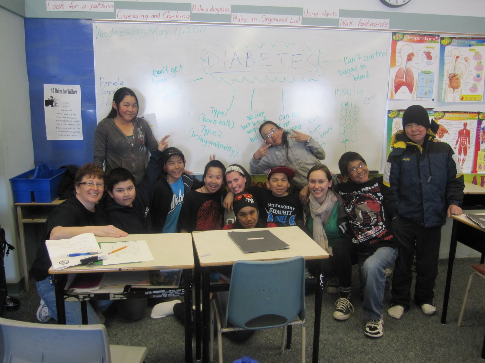 Today was a sweet day at school because we managed to make diabetes fun (we think anyway)! We really liked teaching it, especially Ellie explaining insulin – bio nerd alert –and the kids didn’t lose interest and seemed to get it. Awww yea!! The health center had our back with some great props and a video on diabetes in Nunavut. The rest of the day will consist of planning for our first Drawing Club meeting tomorrow, lesson planning, and washing socks.