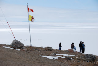 This morning (yesterday) we met up with Shelly at the Arctic College and she gave a tour of the town. We went to Nasivvik (the high school), Ulaajuk (the elementary school), the Co-op/coffee shop, the Health Centre, the Parks Office, the Hotel, meeting LOADS of people all along the way. Shelly is one connected lady! Other sites included polar bear skins, adorable kids in parkas, icebergs, dogs, sewage trucks and the most serene view of the mountains across the water.  We met Rob and Lorne the principals of the high and elementary schools and they are both enthusiastic about our program and having us in the schools. Tomorrow we will be meeting some of the teachers and hopefully sitting in on some classes. Then in the afternoon we are going to help with a fundraiser at the Arctic College. All our practice this year will pay off!